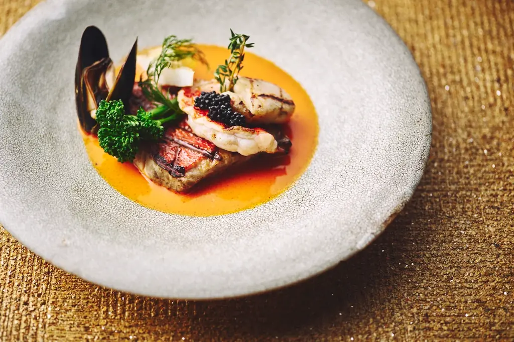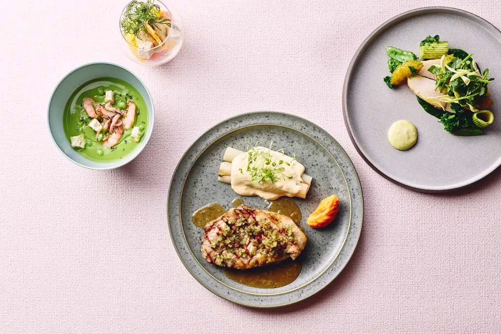 薪グリルでの火入れ、スープの濃度調整、魚介のバランスを精密に設計。タイムやディルの香りを用い、春らしい軽やかな余韻を演出し、箱根の自然と海の恵みを同時に感じられる仕立てになっています。