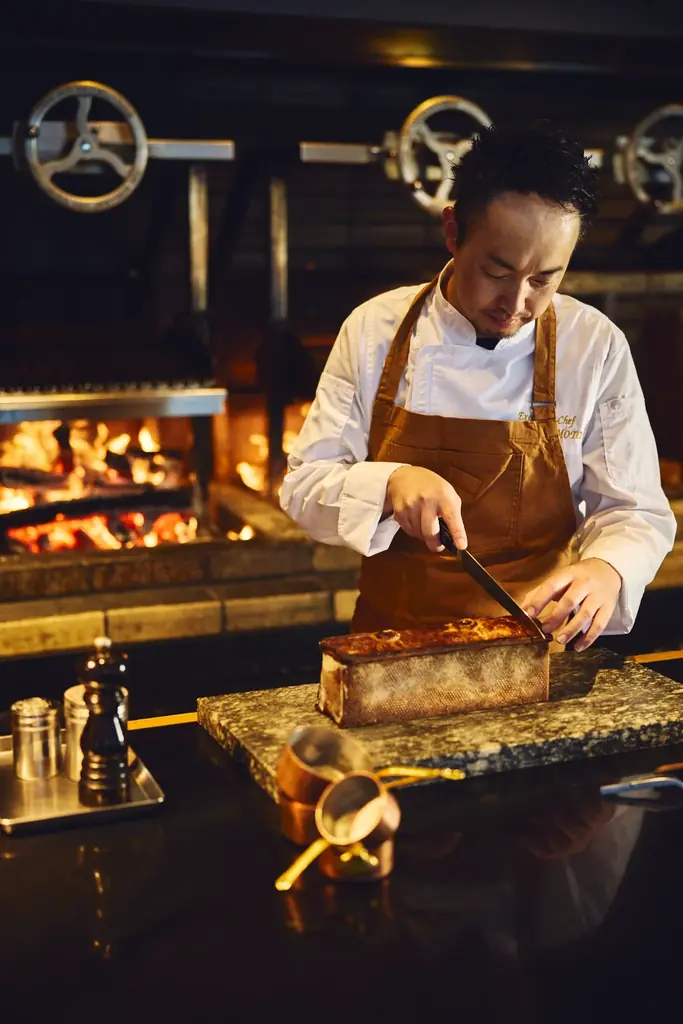 総料理長の坂本啓はフランス料理を基盤に、多くの名店や都内のミシュラン三つ星レストランで経験を積んできました。蓄積した技術と感性をもとに、薪の炎による力強さとフレンチの繊細さを掛け合わせ、地元食材の魅力を最大限に引き出す料理を目指しています。