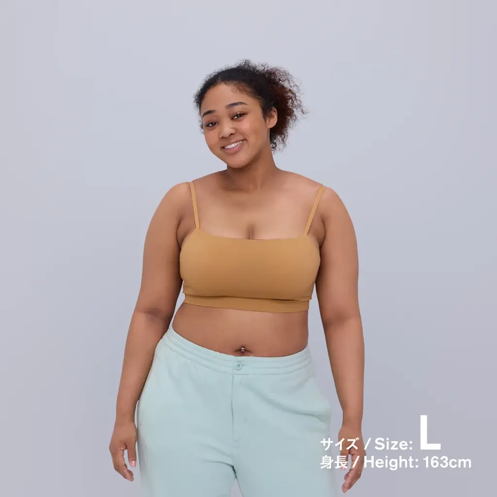 | 特徴 | 一体型カップ付き、バスト肌側に縫い目なし、滑らかな肌あたり、表裏配色に配慮 |