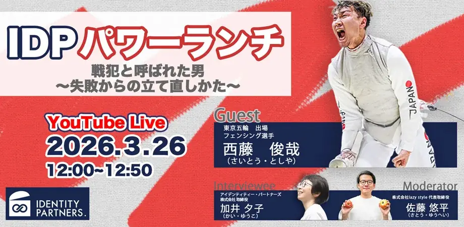 アイデンティティー・パートナーズが主催するオンライントークショウ「IDPパワーランチvol.3」では、フェンシング選手の西藤俊哉(さいとう・としや)氏を迎え、「戦犯と呼ばれた男〜失敗からの立て直しかた〜」をテーマにした対談が行われます。プレスリリースは2026年3月5日13時21分に発表されました。