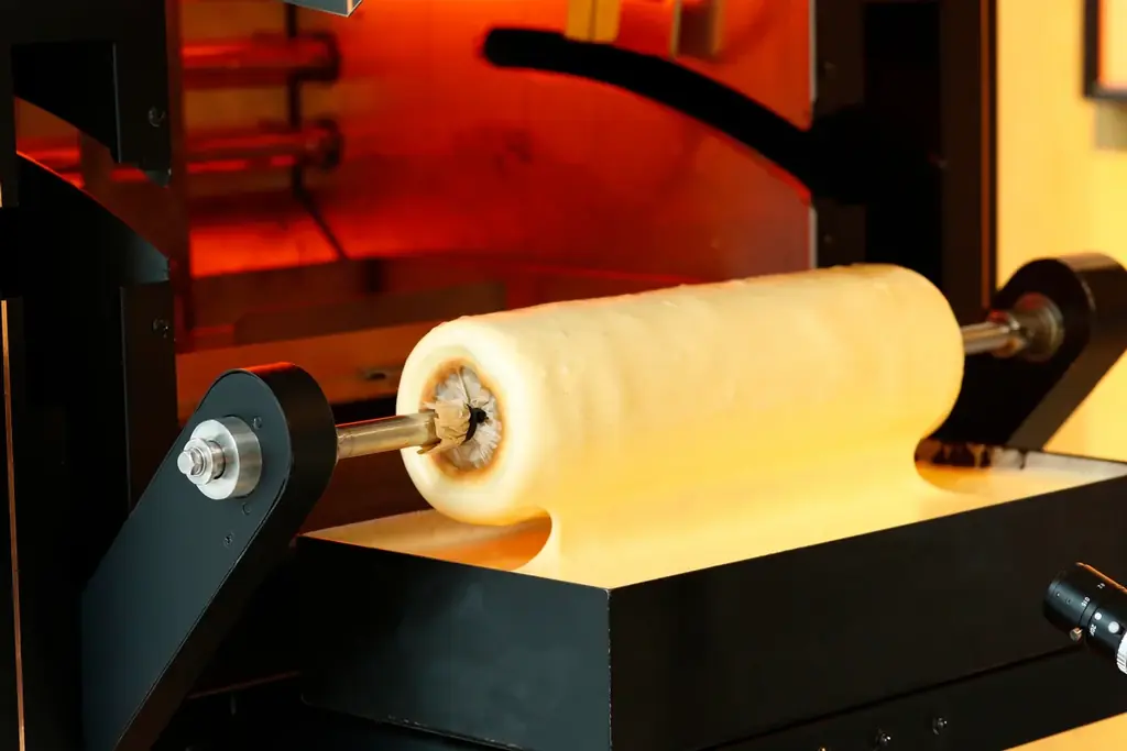 THEO(世界初のバウムクーヘン専用AI職人)と焼きたてバウム