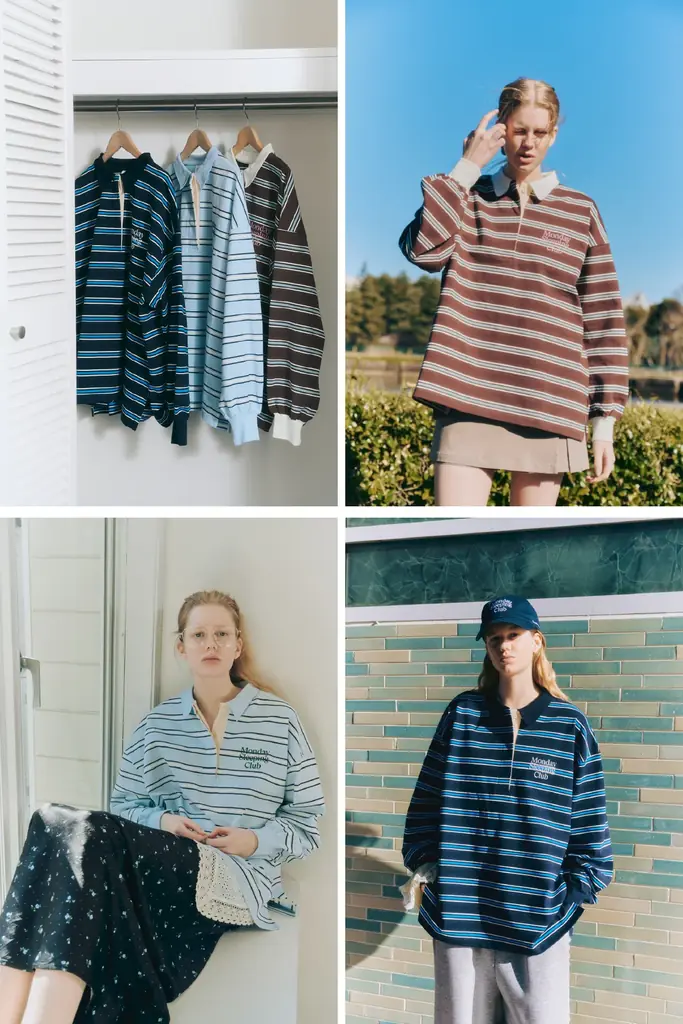 色柄やシルエットもテーマに沿った設計で、マルチボーダーやクラシックなテニスウェアを思わせる要素を取り入れつつ、オーバーシルエットや着回ししやすいシンプルなTシャツなど、タウンユースに馴染む調整が行われています。