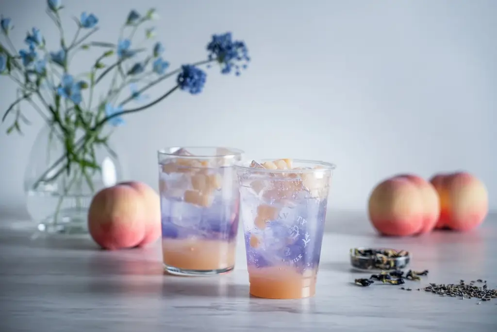 CHAVATYでは、オンラインショップでの新商品販売に加え、店舗でも夏限定メニューを展開しています。特に注目すべきは、白桃ジャスミンティーソフトクリームとピーチラベンダーティーソーダです。