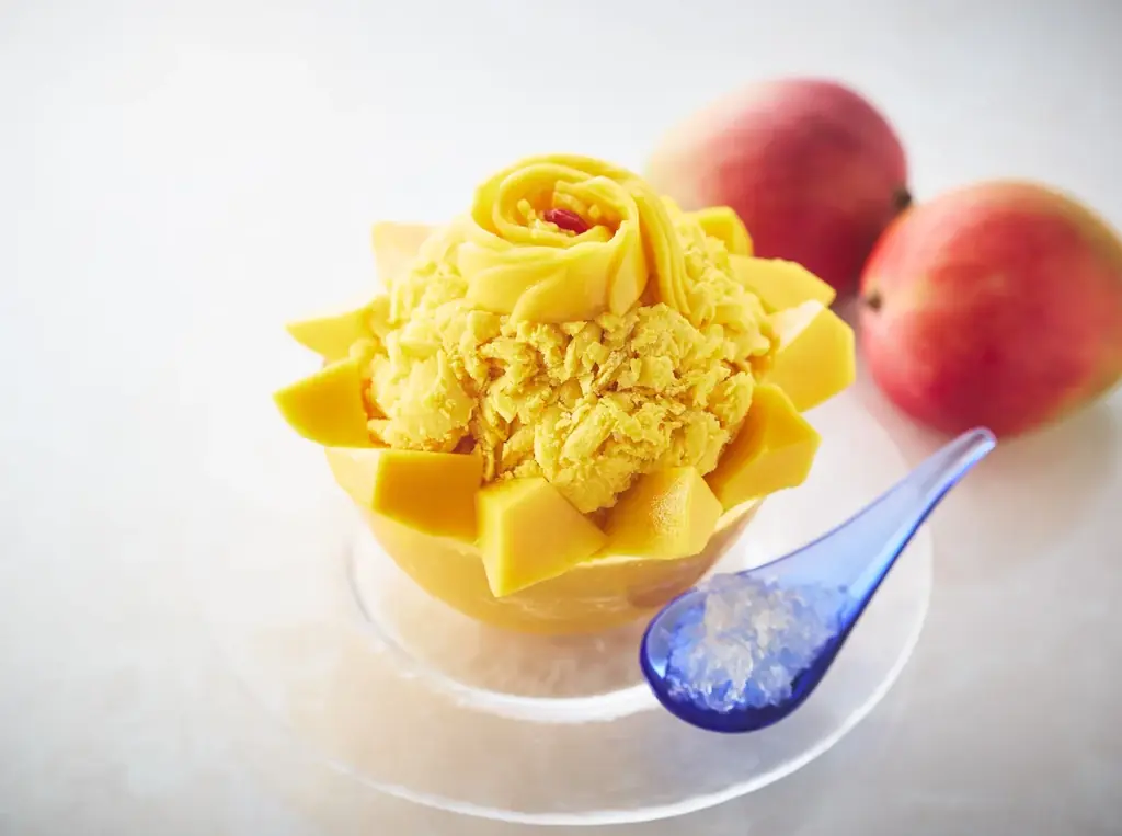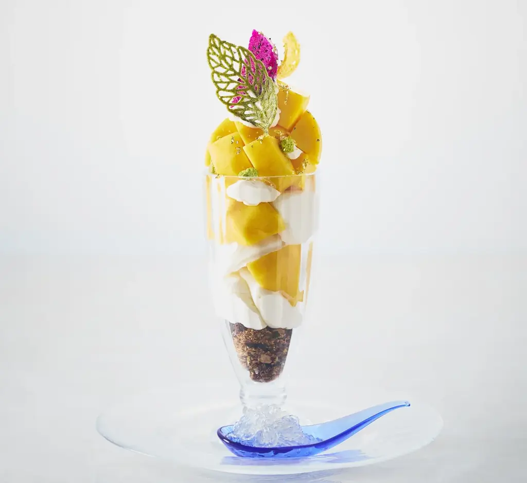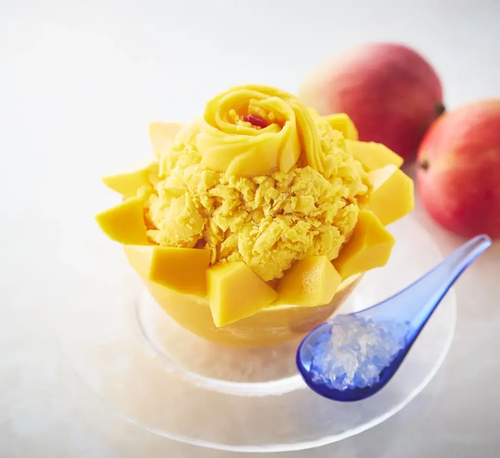 このデザートは、暑い夏にぴったりの癒しのひとときを提供することを目的としています。マンゴーの旬に合わせ、甘く冷たく、贅沢なかき氷とパフェを楽しむことができます。