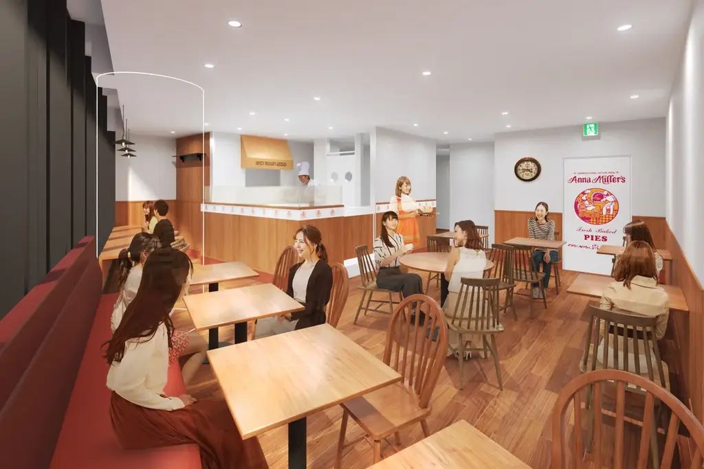 これらの要素を軸に、50年間日本で培ったスクラッチ・メイドのアメリカンパイやフードメニューを店内で調理し、「出来立て」や「ライブ感」を重視して提供します。また、特色あるコスチュームによるサービスも継続し、テイクアウト需要に応える店舗レイアウトを予定しています。