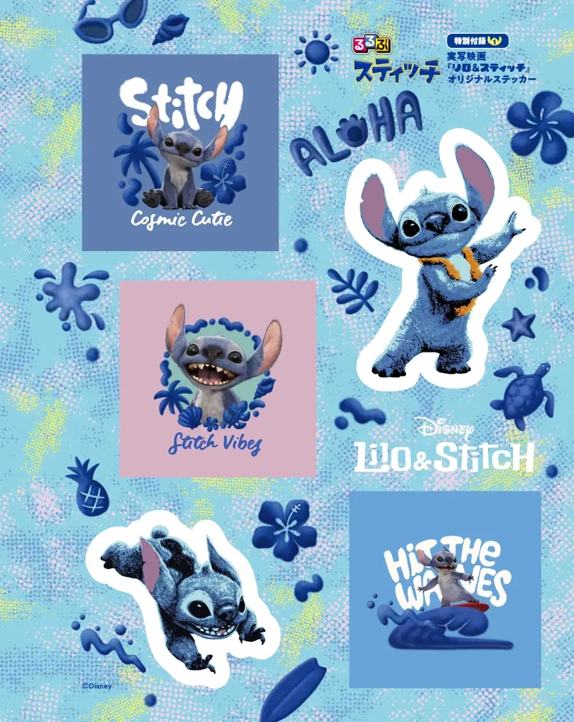• 豪華付録: 実写映画『リロ&スティッチ』デザインのオリジナルステッカーと、名場面ポスター(両面)を付録として提供します。
