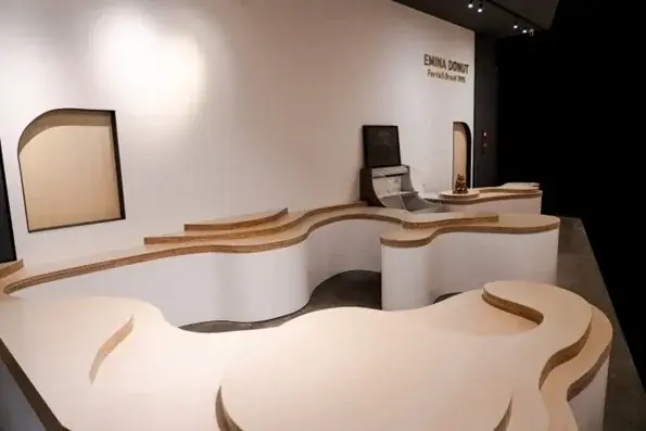 江別の蔦屋書店内に位置するこの新店舗では、まるで列島のような島模様の什器テーブルに、様々なエミナローカライズド・ドーナツが並びます。店舗デザインには北海道ならではの細かな仕掛けが施されており、訪れるお客様には「旅してもらうような」特別なひと時を楽しんでもらうことを目指しています。