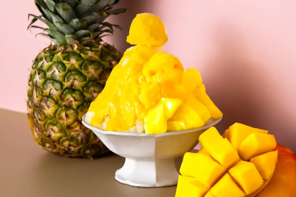 「ニューラフレア」のかき氷は、どっさりのフルーツとフレーバーアイスが乗った贅沢な一品です。さらに、ふわふわのシェーブドアイスの中にはミルクプリンが隠れており、満足度が非常に高い内容となっています。以下に、かき氷メニューの詳細を紹介します。