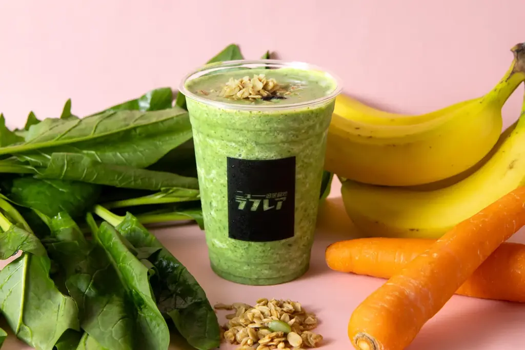 ほうれん草、バナナ、人参、豆乳を使った、ヘルシーながらも満足感のあるスムージー。