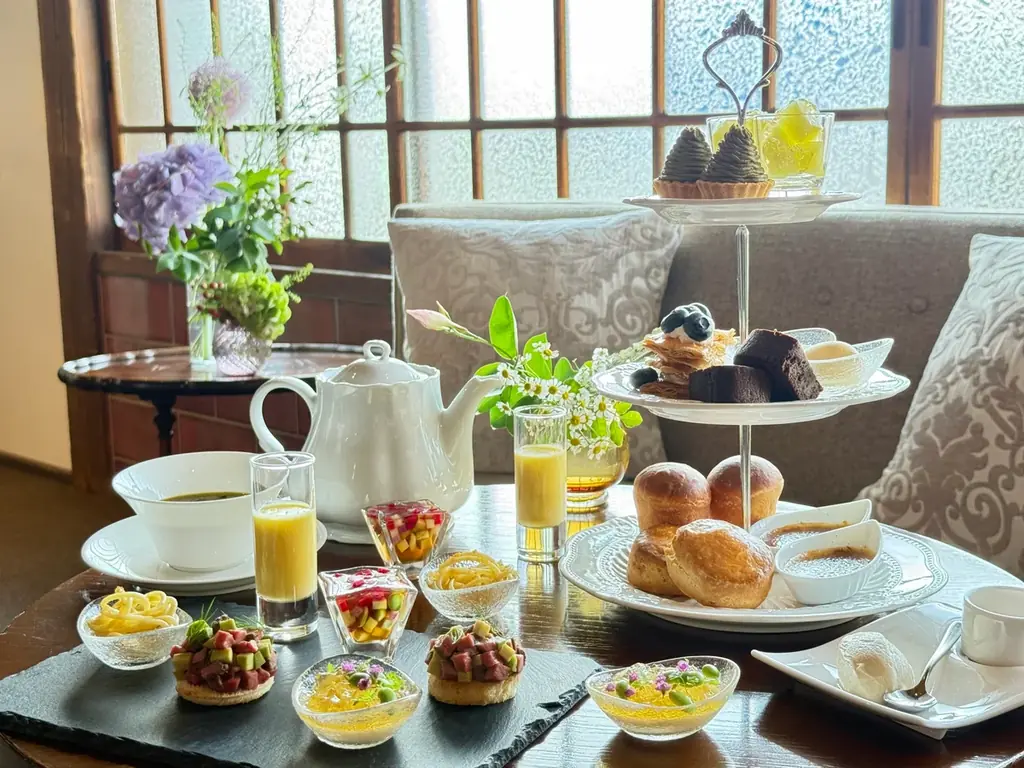 | ・鎌倉野菜「トウモロコシ」のピューレ ・冷製鶏コンソメのロワイヤル ・鎌倉野菜と和出汁ジュレのカクテル ・冷製カラスミのカッペリーニ ・和牛タルタルのカナッペ ・ごろっと牛すじのグリーンカレー | ・抹茶モンブラン ・鎌倉産ブルーベリーのミルフィーユ ・日本酒アイス「樽酒白雪」 ・和三盆とたまり醤油のクリームブリュレ ・三浦メロンのコンポートと鎌倉産レモンバーベナのジュレ ・山椒のブラウニー | ・ブリオッシュ ・スコーン ・クロテッドクリームとはちみつ | ・コーヒー&紅茶のフリーフロー ・スパークリングワインなどのオプション |