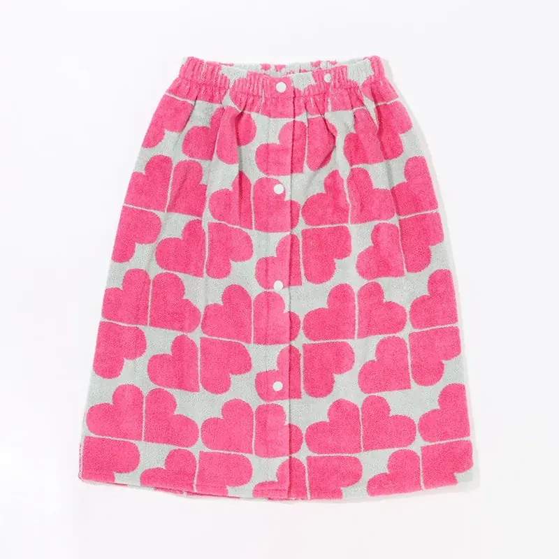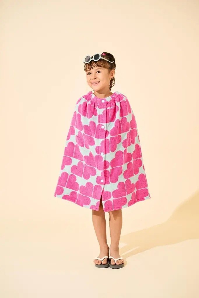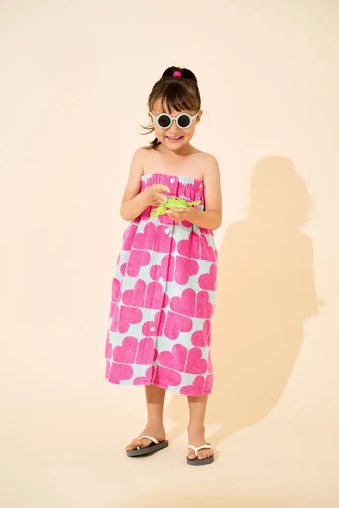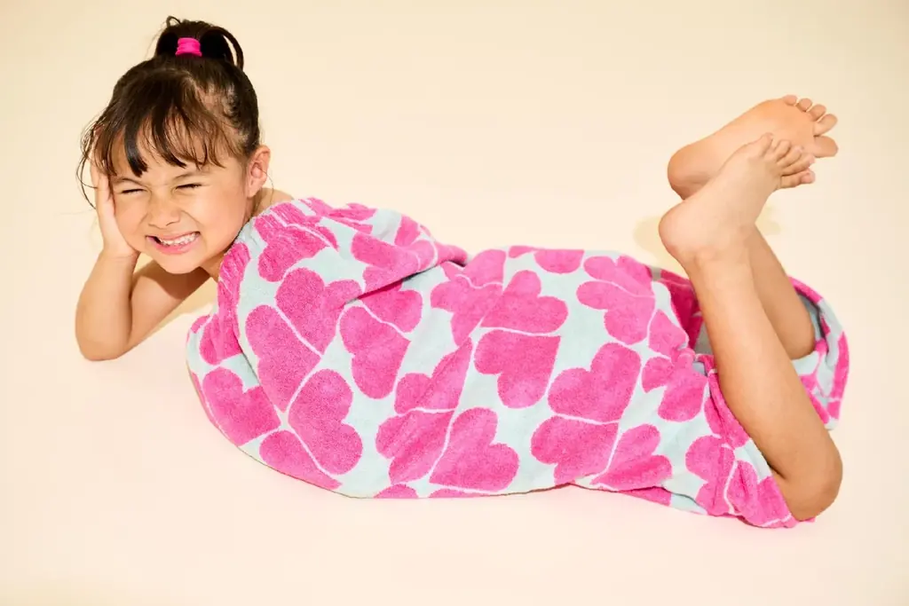 各アイテムは、ハートとウェーブの2つのパターンで展開され、ジオメトリックなモチーフが特徴です。可愛らしいデザインながらも、甘すぎずポップでスタイリッシュな仕上がりとなっています。また、ロンハーマンキッズでは、Hippopotamusのインラインカラーとは異なるエクスクルーシブカラーで展開されています。