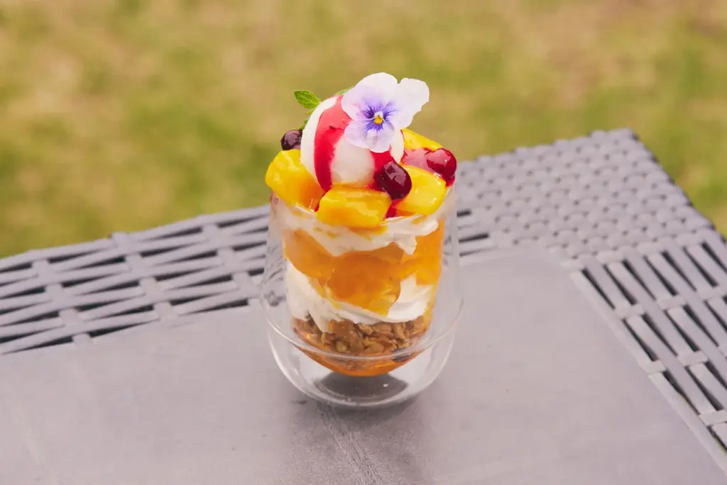 - 特徴:南国の香りとジューシーな果肉のハーモニーを楽しめる、さっぱりとしたパフェ。チェリーソースやライチシャーベットとの絶妙な組み合わせが特徴。