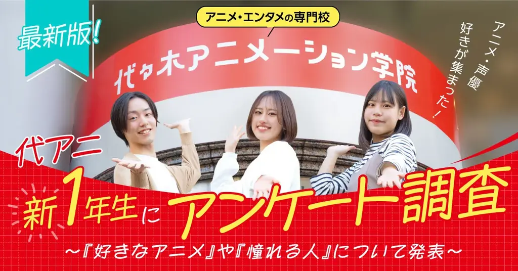 2025年7月3日、株式会社代々木アニメーション学院(以下、代アニ)は、全国の新入生を対象に実施した「好きなアニメ」や「憧れの存在」に関する調査の結果を発表しました。この調査は、代アニに入学する新1年生がどのようなアニメを好み、誰に憧れているのかを明らかにするもので、アニメ・エンタメ業界に興味を持つ学生たちの傾向を知る貴重なデータとなっています。
