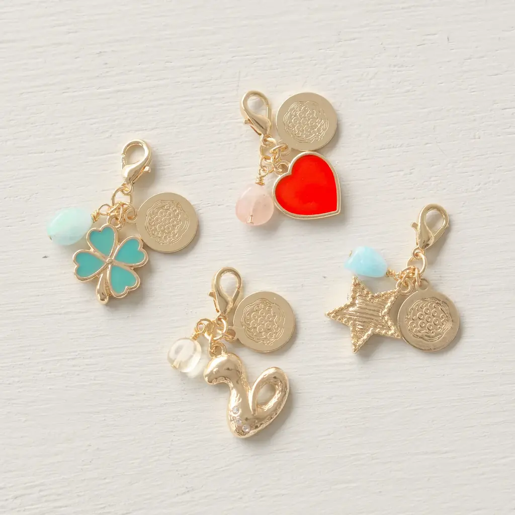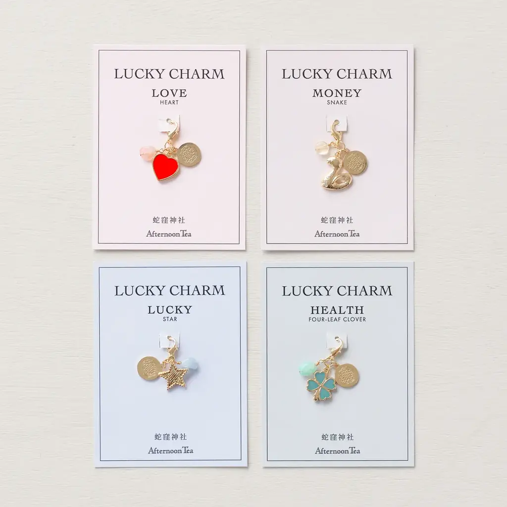 | ハッピーチャーム | 各¥1,980(税込) | ハート(恋愛運)/スネーク(金運)/スター(幸運)/クローバー(健康運) | 上質なデザインで日常にさりげないお守りを提供 |