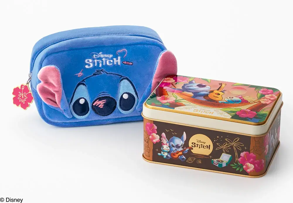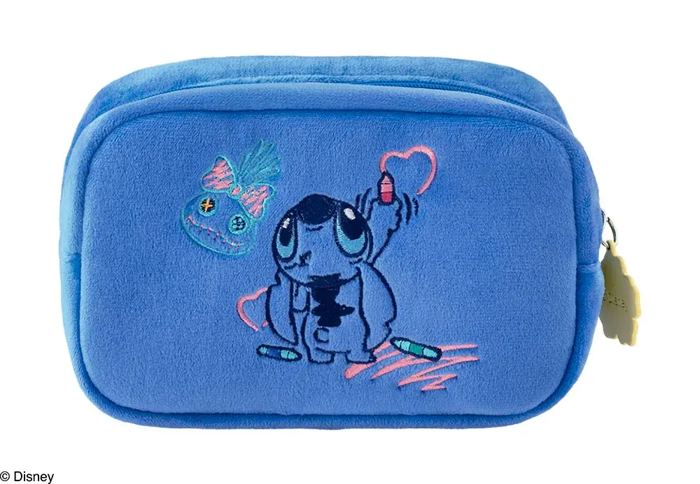 この新作スイーツに合わせて、オリジナルグッズも登場します。特に注目は、立体的なデザインが特徴の「スティッチ」ぬいぐるみポーチです。スクエア型で収納力もあり、手触りもぬいぐるみのように柔らかく、持ち運びにも便利です。