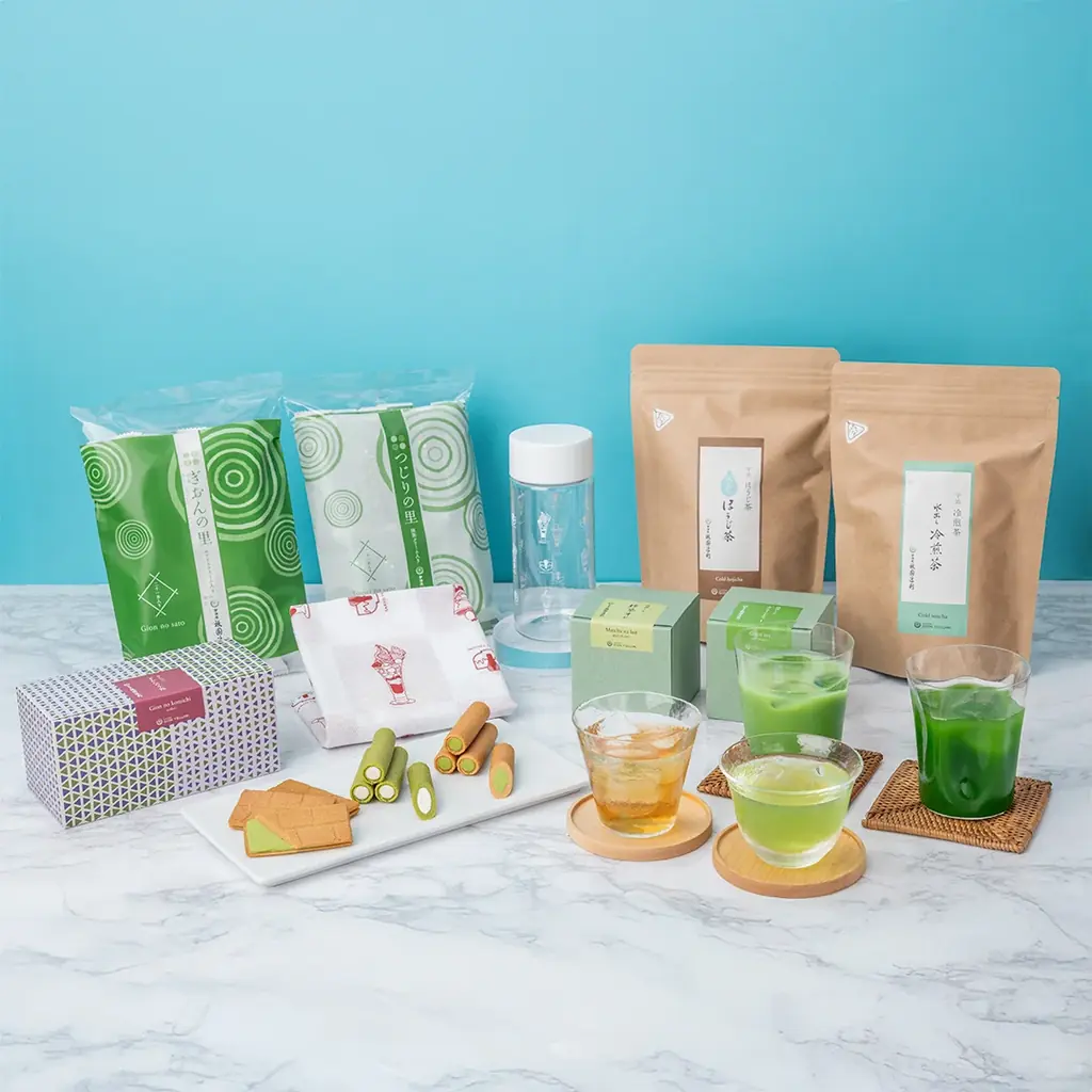 2025年の夏の福袋は、冷煎茶やほうじ茶のティーバッグ、抹茶菓子、オリジナル手ぬぐいと冷茶ボトルなど全9品がセットになっており、夏の健康を祈願した特別な内容です。