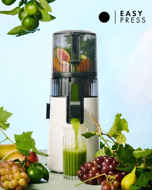 1. 熱に弱いビタミンや酵素を抽出:生の野菜や果物をすり潰すようにして搾汁し、栄養がたっぷりのジュースを簡単に作れます。低速搾汁方式により、熱に弱い酵素やビタミンを壊しにくく、素材本来の風味や栄養を保つことができます。