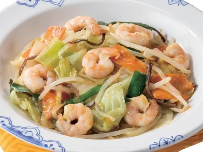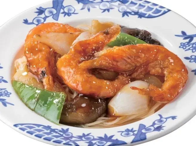 海老と白菜のあんかけ麺 799円 海老と白菜を強火で炒め、醬油ベースのスープと絡めた優しい味わい。