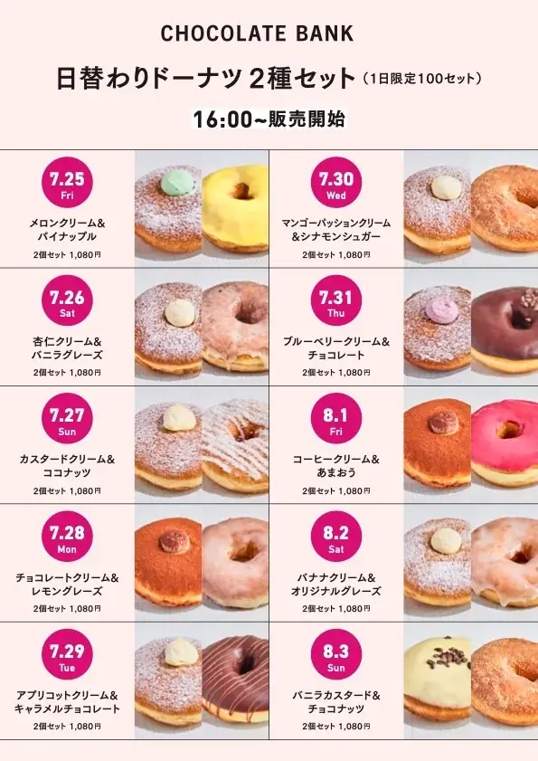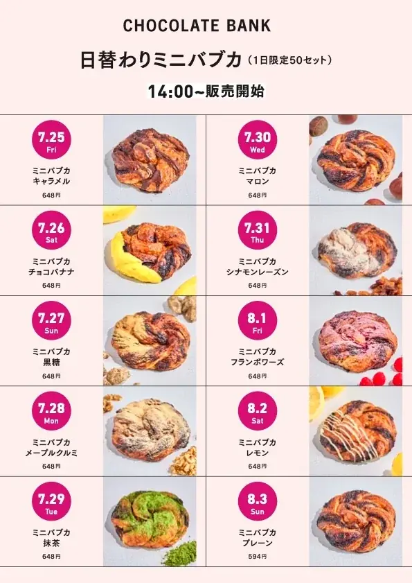 以下は、チョコレートバンクが提供する日替わりスイーツの一部です。