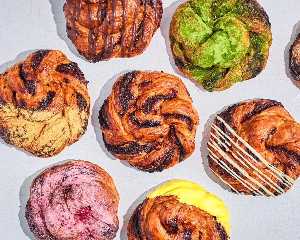 日替わりスイーツは30種類以上あり、例えばクリームたっぷりのドーナツや発酵バターを使ったチョコレートパン、鮮魚のフィッシュバーガーなど多彩な味が楽しめます。