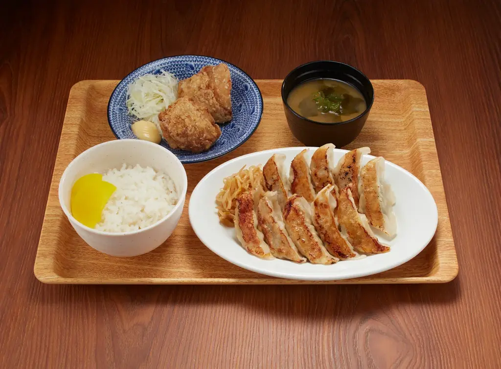 | 餃子定食 | 肉汁餃子10個、唐揚げ2個、ライス、味噌汁 | サイド人気No.1の餃子が主役!唐揚げとの黄金コンビ。 |