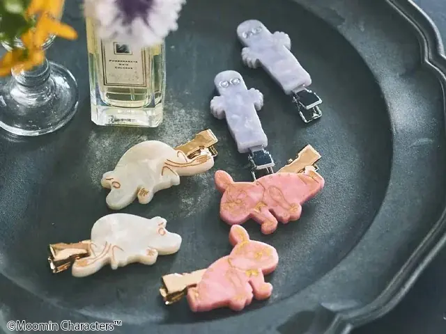 ユニークなポーズがかわいいムーミンと仲間たちのヘアクリップです。ミルキーカラーやマーブル風素材の上品なデザインで、髪に跡がつきにくいフラットな裏側が特徴です。プレゼントにも最適なアイテムです。