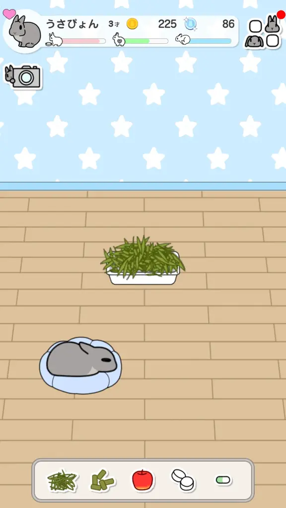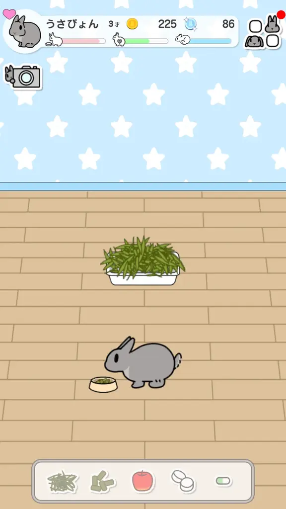 うさぎのお世話をしながら、さまざまな機能を楽しむことができます。具体的には、以下のような要素があります。