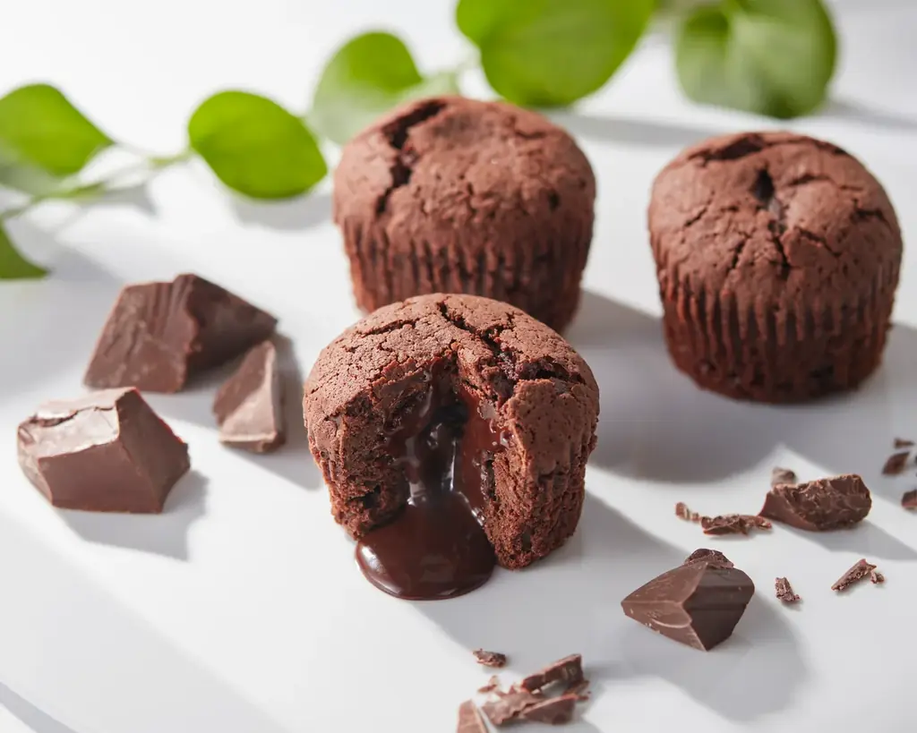 チョコレートと生クリームを合わせたガナッシュを使用。冷やすと濃厚なチョコレートケーキのようになり、電子レンジで温めるとフォンダンショコラ風に。