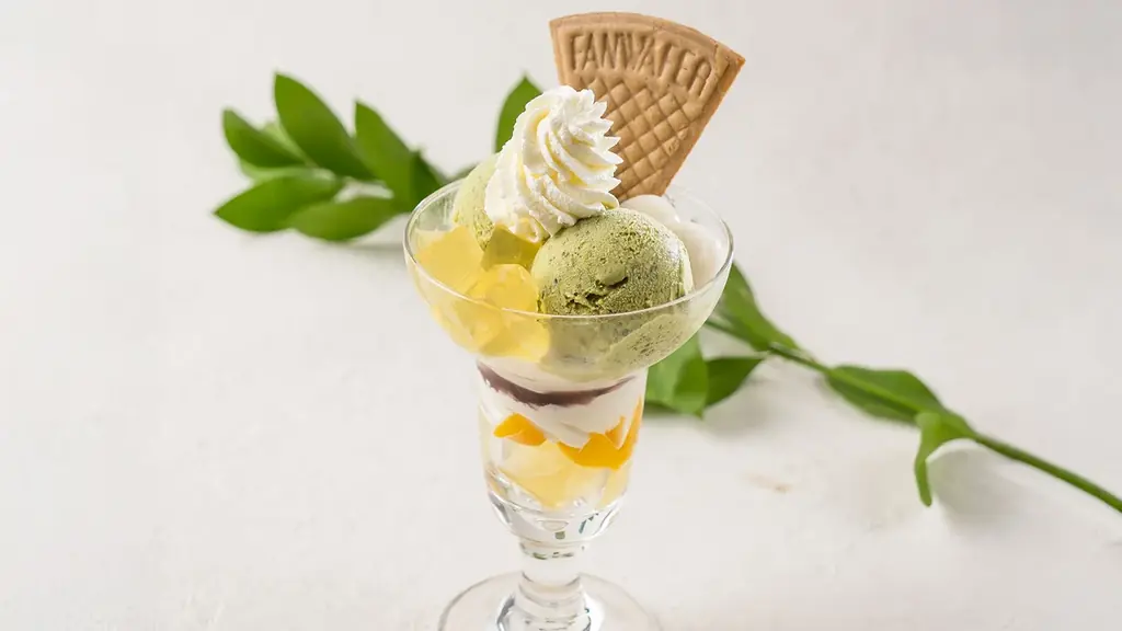 - 内容情報: 緑茶ゼリー、緑茶アイス、フルーツ(パイナップルまたは黄桃)、あんこなど