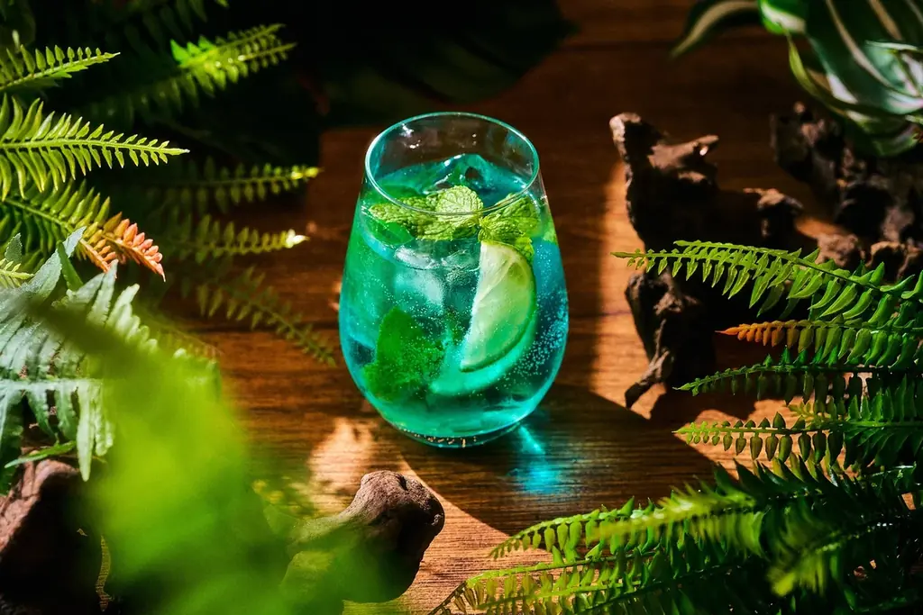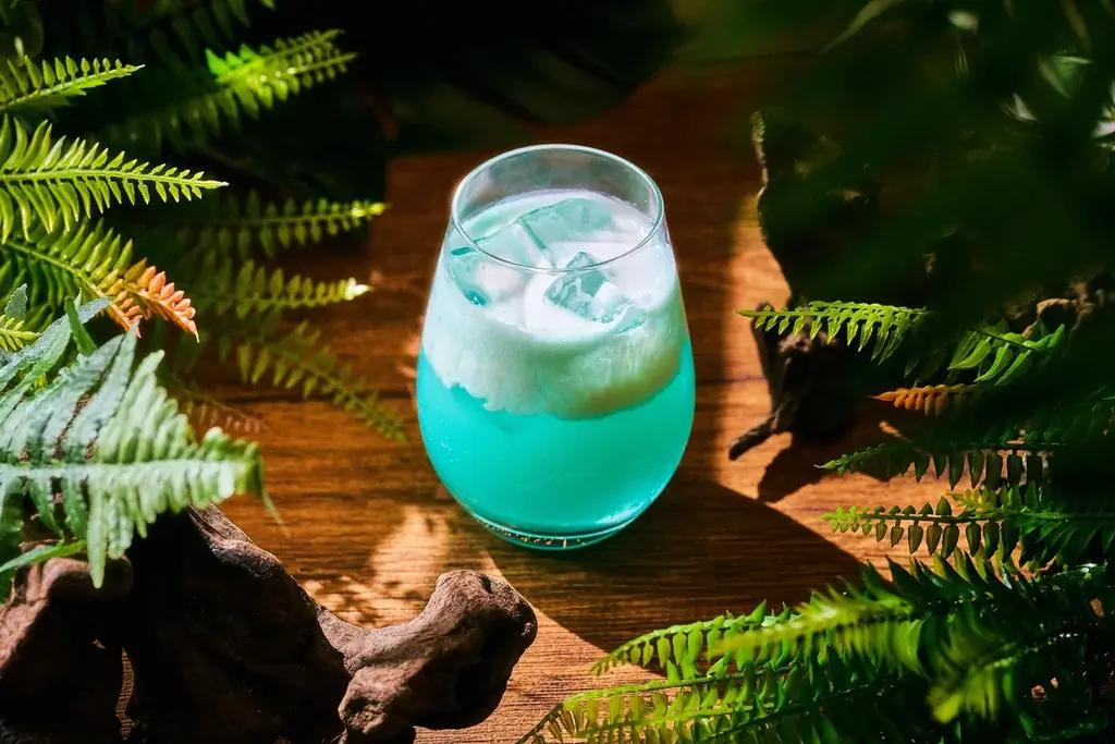 - ジュラシック・ブルーモヒート(海) – 透き通った海をイメージした爽やかなアップル風味のモヒート。価格は900円。