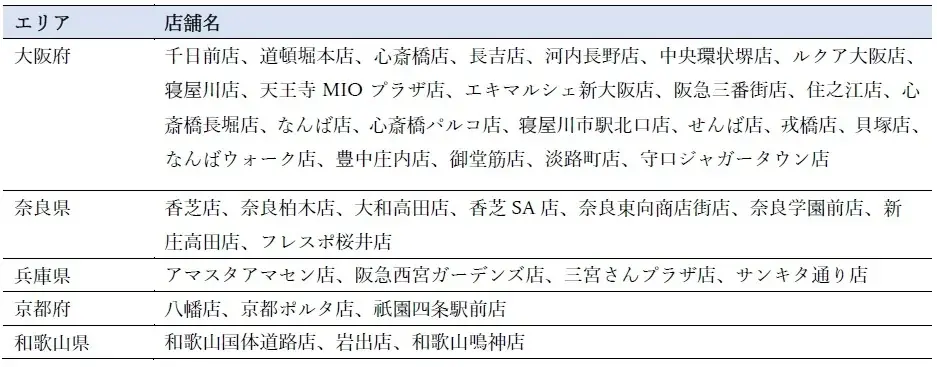 • 実施店舗:関西(大阪・兵庫・奈良・京都・和歌山)の42店舗
