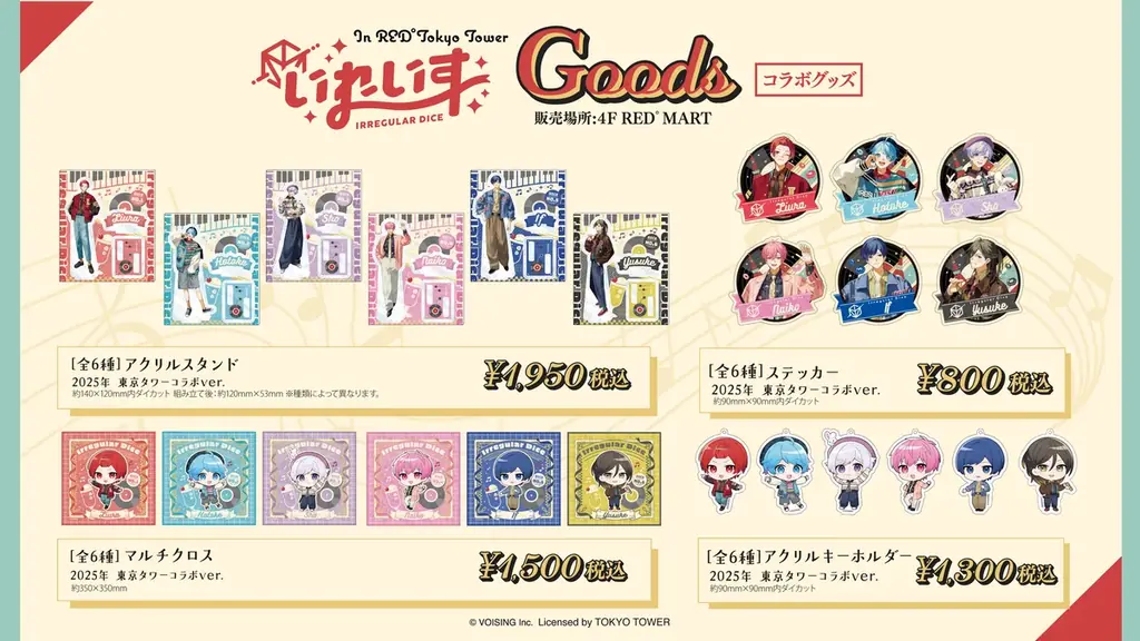 また、イベントでは描き下ろしイラストを使用したオリジナルグッズも販売されます。アクリルスタンドやステッカー、マルチクロス、アクリルキーホルダーなど、日常にレトロな彩りを添えるアイテムが揃っています。これらはすべて、イベントの世界観とビジュアルの魅力をそのまま形にしたファン必見のアイテムです。