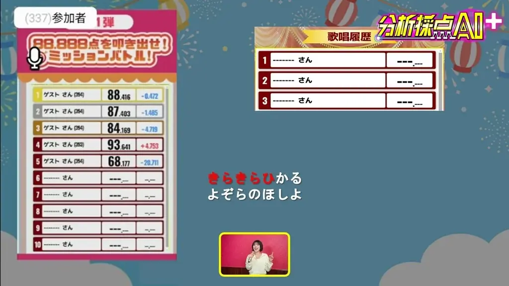 今回の「夏の採点イベント」は、「X PARK」とお馴染みのカラオケ採点機能「分析採点AI+」を融合させたもので、参加者はリアルタイムで得点を競い合います。特に注目すべきは、特定のスコアにどれだけ近づけるかが鍵となる点です。