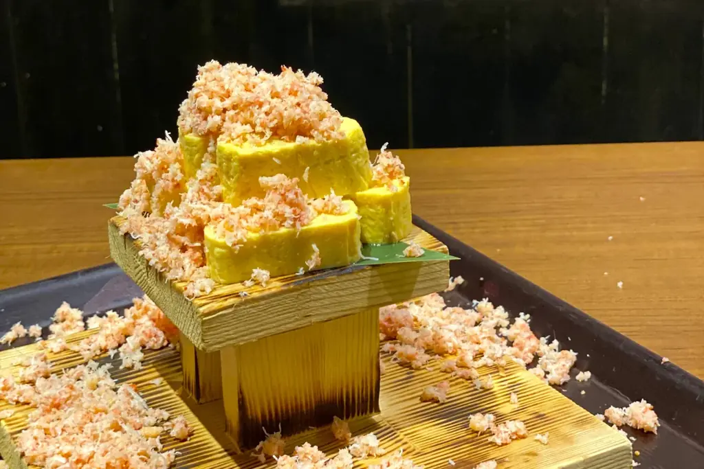 | 名物!かにぶっかけ だし巻き玉子 | 1,099円 | 脅威の注文率90%以上の超名物商品。赤字覚悟でかにをかけ続ける。 |
