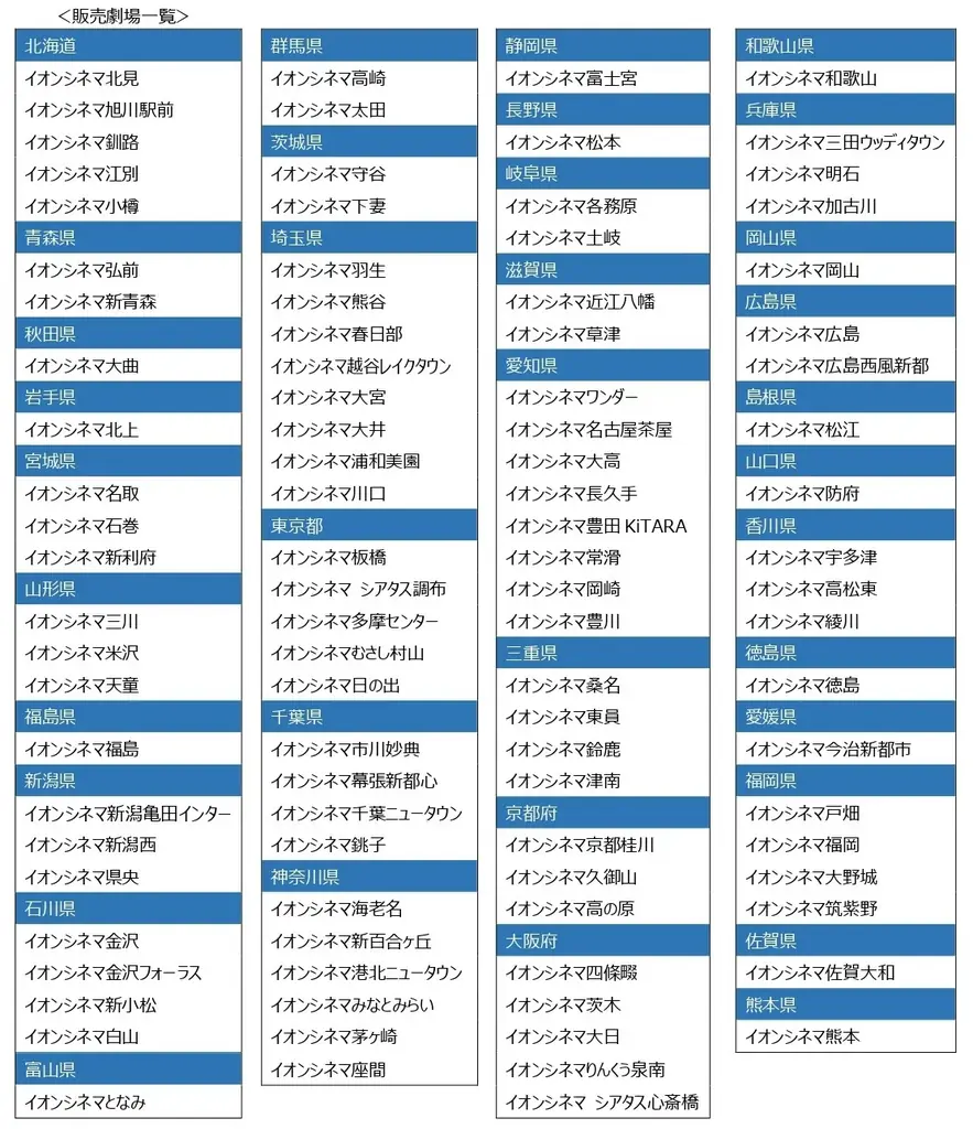 また、販売劇場については別紙にて一覧が用意されていますので、購入を希望される方は事前に確認しておくと良いでしょう。