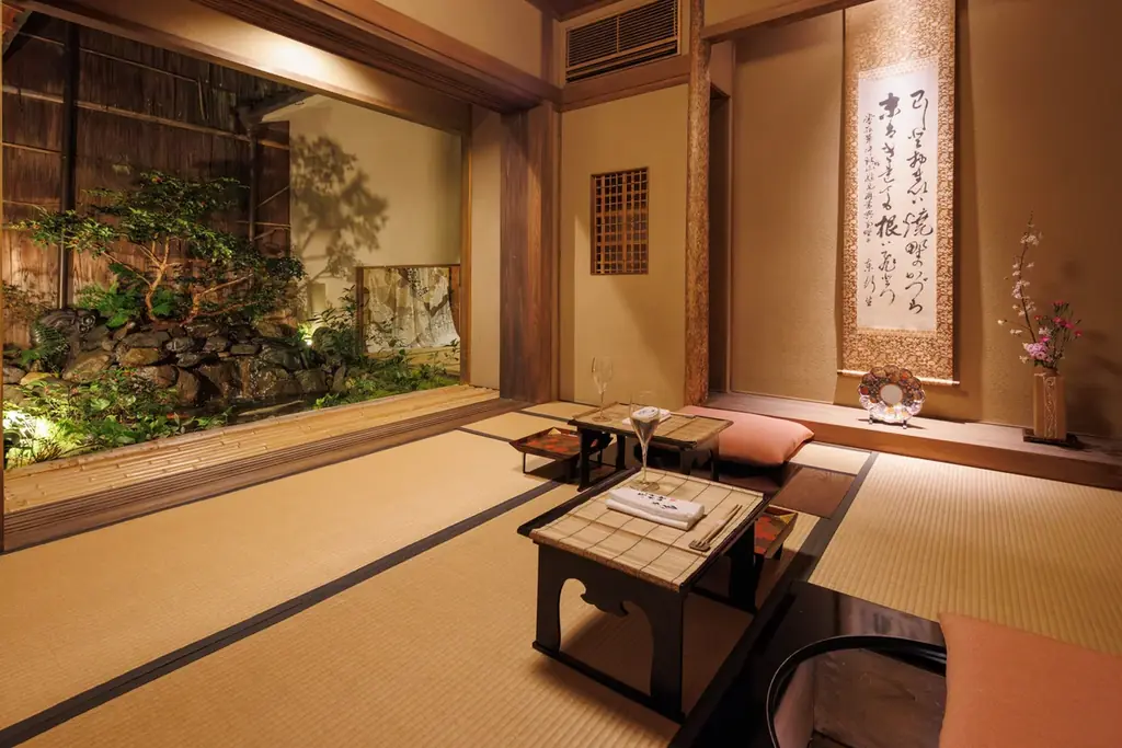 また、鴨川を眺めながら食事を楽しめる個室も完備しており、都会の喧騒から離れた特別な空間での食事を提供しています。坪庭を眺めることができる人気のお部屋もあり、お部屋のご指定も承っております(別途個室料が必要です)。