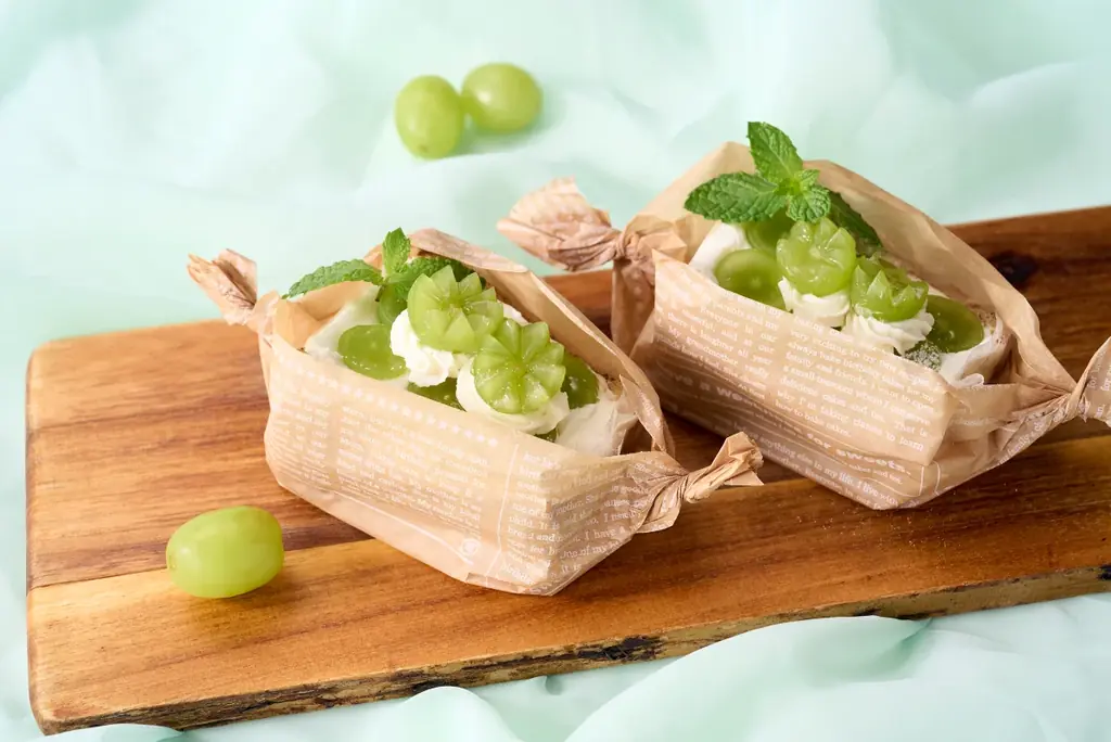 このシフォンサンドは、シャインマスカットの弾ける甘みが詰まったぷるんとした果肉と、なめらかなクリーム、軽やかで優しい食感のシフォンケーキの三重奏を楽しむことができます。秋の味覚を存分に味わえる贅沢なスイーツです。