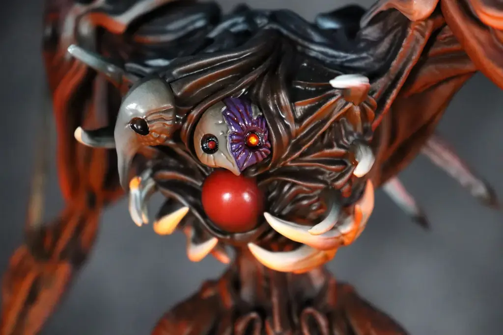 フィギュアの彩色にもこだわりが見られます。劇中冒頭で碇シンジの前に現れる「第4の使徒」の姿をイメージし、N2地雷による爆炎の中でも健在な姿を表現しています。具体的には、以下のような工夫が施されています。