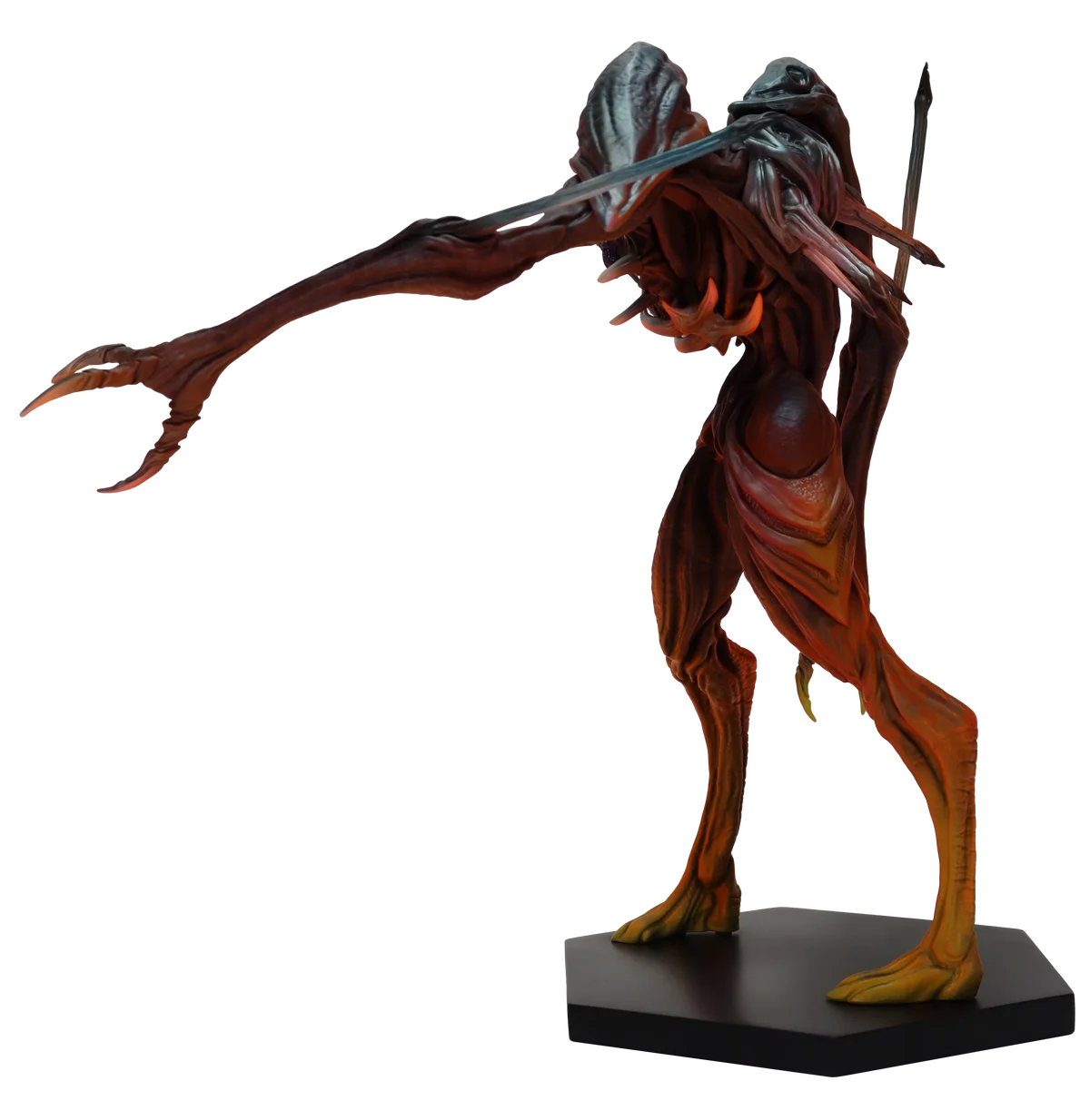 - 対照的なディテール:骨ばった部位の硬質感と、柔らかに見える関節部の繊維的な造型が施されています。