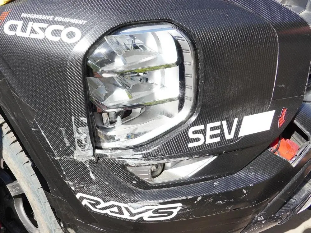 実際に、Rally Hokkaido 2024のSS4でフロント右側をヒットした際、施工していたリバイバルシートを剥がして点検した結果、シートには傷があるものの、ヘッドライト自体には傷がありませんでした。このことから、リバイバルシートの優れた保護機能が確認できました。詳細な修復動画も公開されていますので、興味のある方はぜひチェックしてみてください。