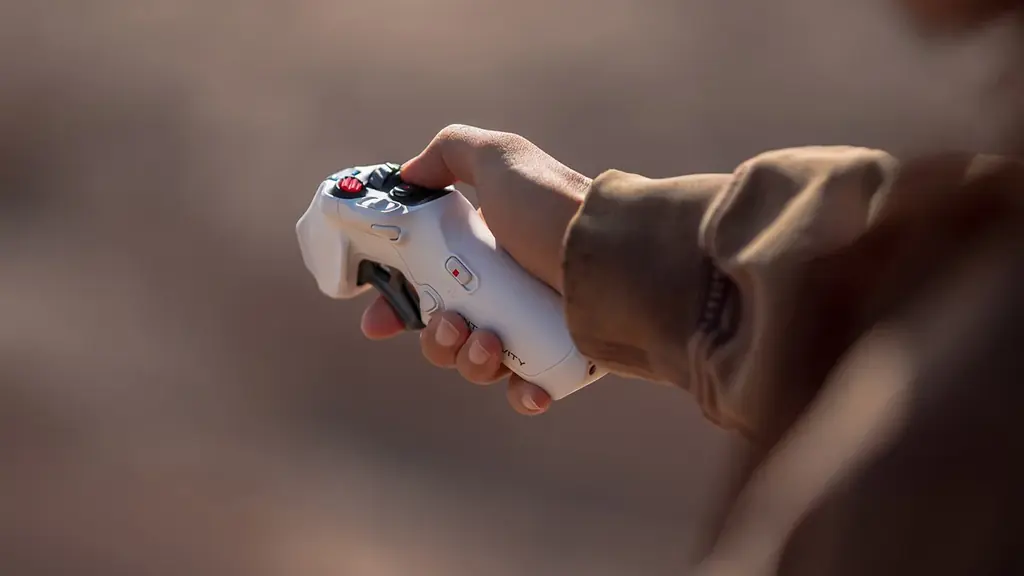 Antigravityの独自技術として「フリーモーションテクノロジー」があり、これをVisionゴーグルとGripコントローラーと組み合わせることで、直感的かつ自然なヘッドトラッキングによる没入型飛行を実現します。操縦者は飛行方向と視線方向を別々に操作でき、探索の自由度が高まります。