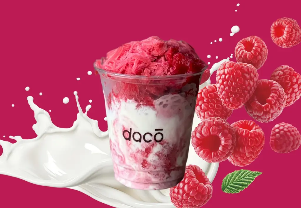 ダコーの2階では、自由が丘店限定の飲むかき氷ドリンク『ポターチェ』を2種類(スイカ/フランボワーズ)で提供します。果汁を瞬間冷凍して削るという工程により、削られた氷が空気を含んでふわっとしたエアリーな食感を生み出します。