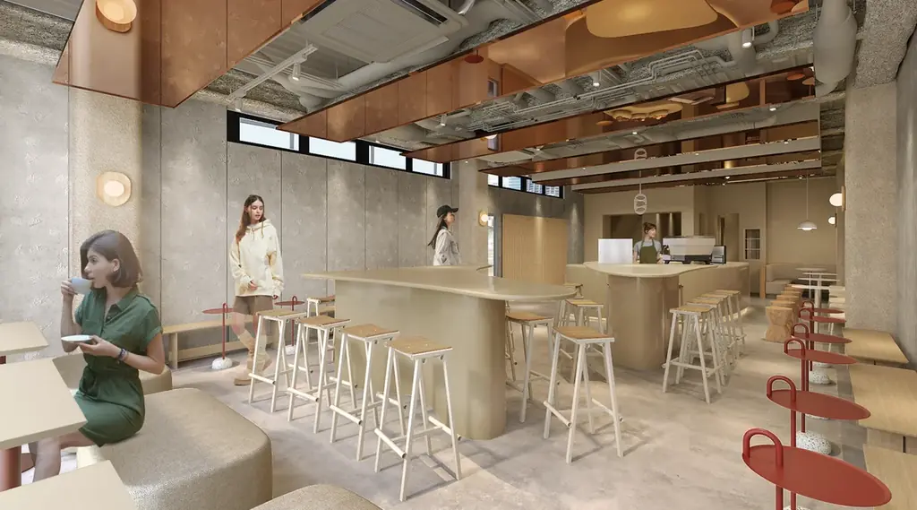 自由が丘という街の特性である“洗練された都会性”と“温かみのある街並み”の両立に合わせ、木の温もりとステンレスのクールな要素を組み合わせた内装で、幅広い世代が訪れやすい“ぬくもりある食空間”を目指します。1階はドーナツ専門のセルフスタイル、2階は広いカフェスペースを設け、用途に応じた利用を想定しています。