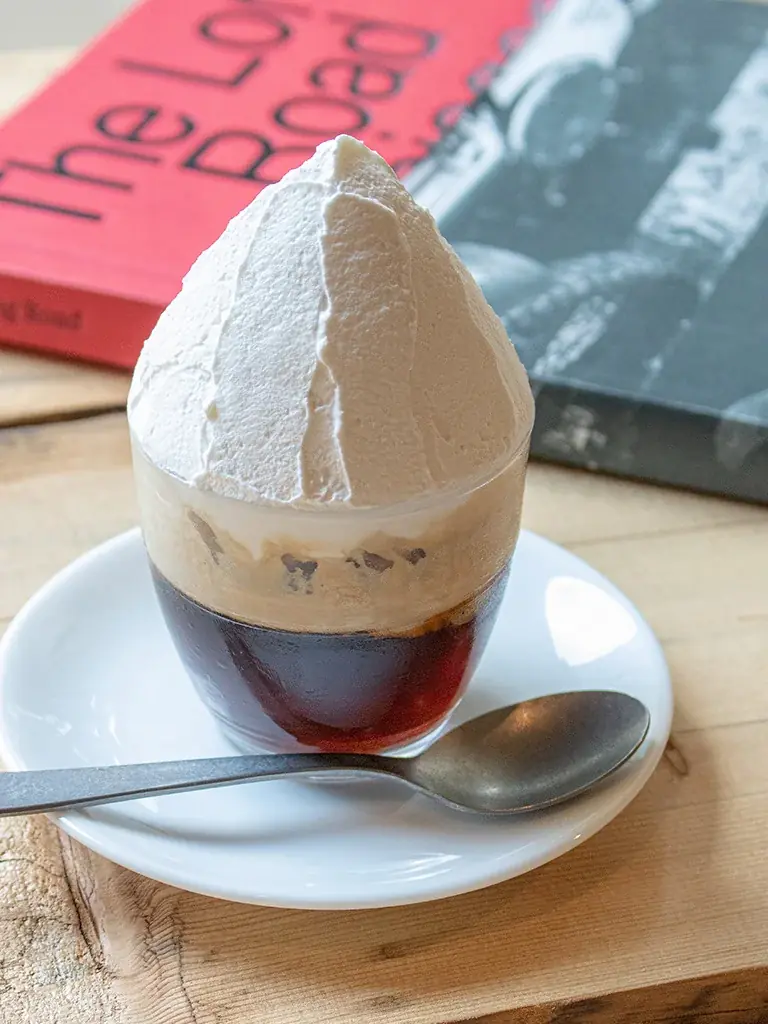 食べ進めると、アイスの冷たさ、ゼリーの弾力、ホイップのなめらかさが同時に口内で混ざり合い、コーヒーの風味の強弱が連続して楽しめます。砂糖に頼らないため、焙煎やリキュールに由来する香りや甘さの方向性がはっきりと伝わる構成です。