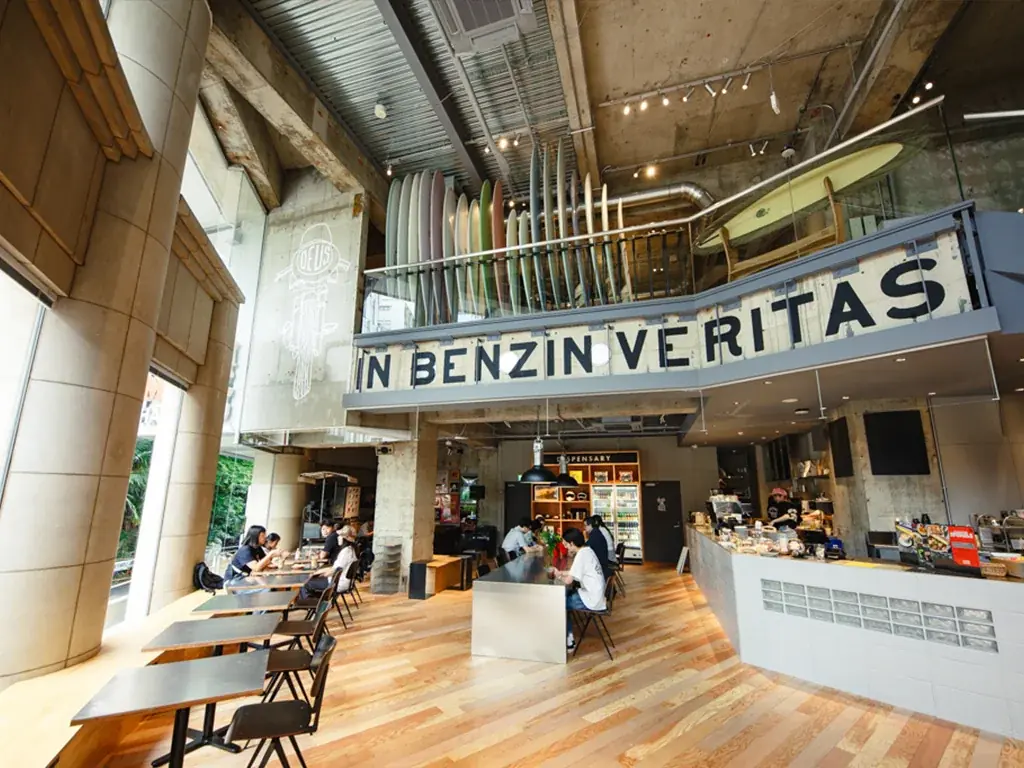 提供はDeus Ex Machina Harajukuの1Fカフェにて行われます。店舗はフラッグシップとしてカフェとショップを併設する施設で、バイク、サーフィン、アート、音楽など多様なカルチャーを取り込む空間設計が特徴です。