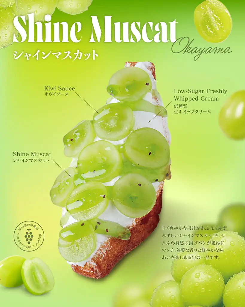 • 使用素材:旬のシャインマスカット(岡山ほか)、低糖質ホイップ、揚げパン
