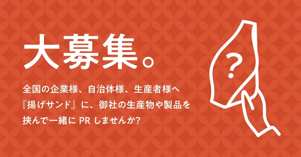 また、Age.3は「揚げサンド」に挟み込む食材を全国から募集しています。地方の名物や地元で愛される産品など、多様な素材とともに『揚げサンド』を作り、広めていきたいという呼びかけが出されています。興味のある企業や生産者は下記の問い合わせ先へ連絡する形です。