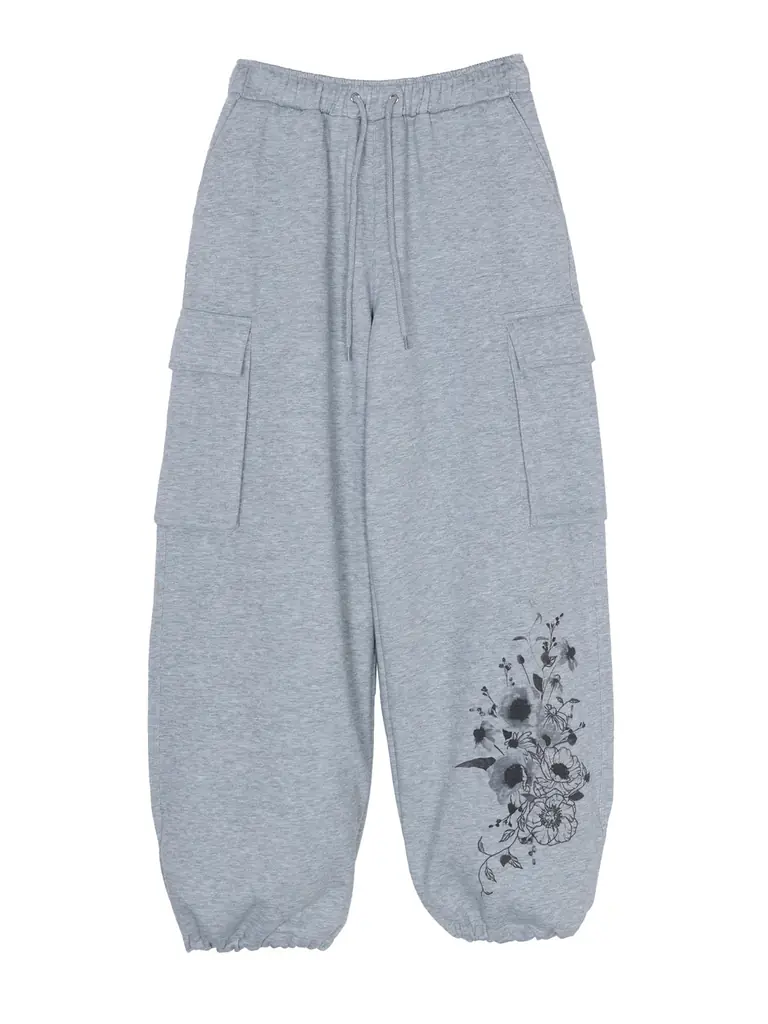 フーディーと合わせてセットアップとして着用できるスウェットカーゴパンツは、カーゴポケットなどのディテールを取り入れつつも女性らしいシルエットを保っています。素材はスウェット地で、街着としての実用性を重視しています。