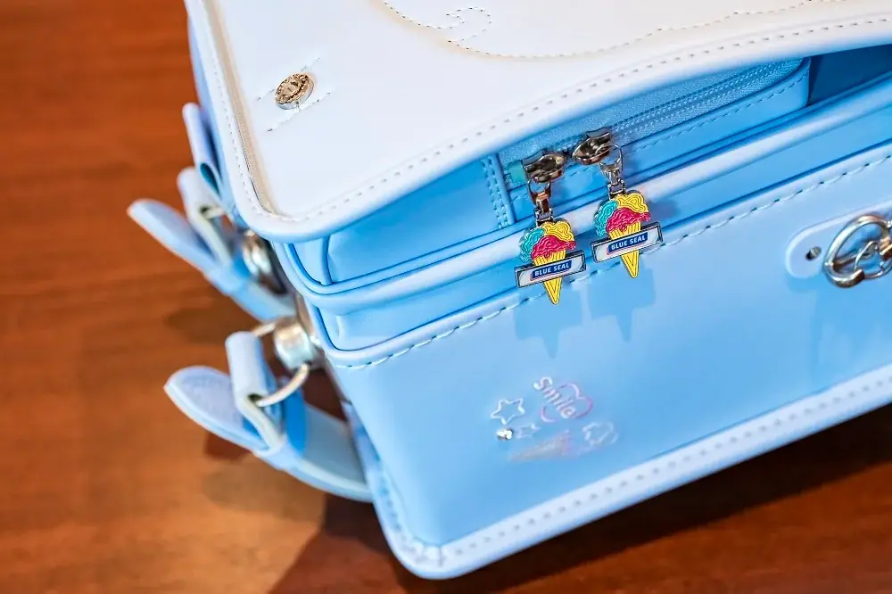 外装にはブルーシールの人気フレーバーを想起させる6色が用意され、側面にはかわいらしい刺繍が施される。チャームには「ビッグディップ」を模したデザインが採用され、ランドセル全体のテーマ性が明確に打ち出されている。