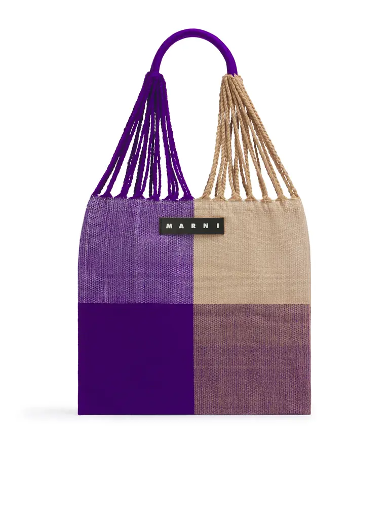 - 【横浜高島屋先行販売】ビッグチェックハンモックバッグ ダークバイオレット 33,000円(約W40cm x H61cm)